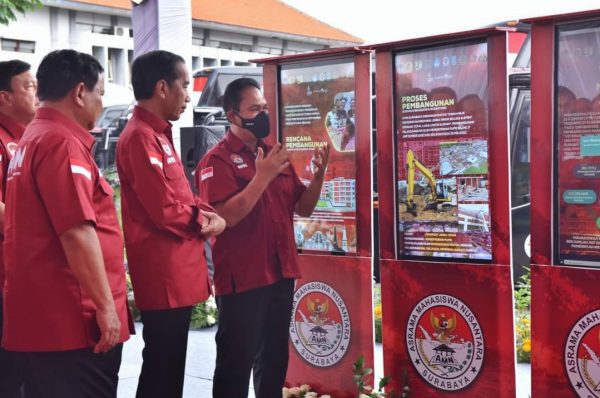 SURABAYA – Setelah meresmikan Asrama Mahasiswa Nusantara (AMN) Surabaya, Selasa 29 November 2022 di Surabaya, Jawa Timur, Presiden Joko Widodo (Jokowi) menyempatkan diri meninjau sejumlah kegiatan di asrama tersebut.