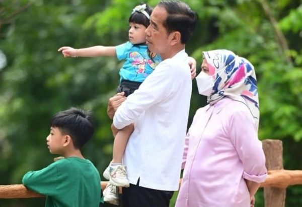 SOlO – Presiden Joko Widodo (Jokowi) dan Ibu Negara Iriana Joko Widodo bersama putra sulung mereka yang juga Wali Kota Solo, Gibran Rakabuming Raka mengunjungi kawasan wisata Solo Safari, Kota Solo, Jawa Tengah, Senin, 23 Januari 2023.