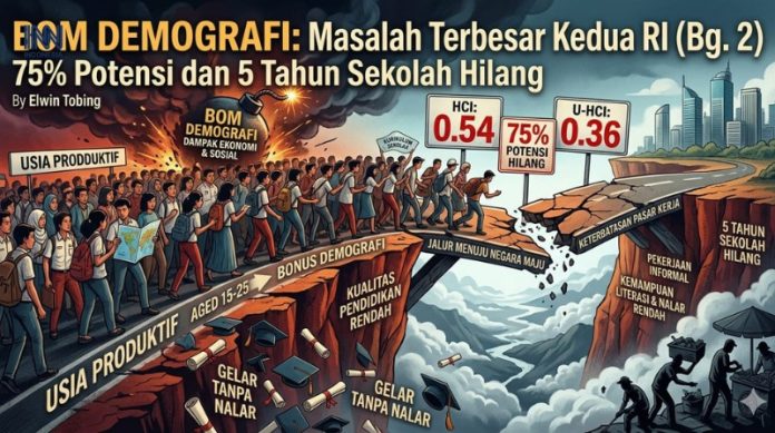INNNEWS- Kalau masalah pertama adalah rapuhnya fondasi belajar, maka masalah kedua adalah akibat lanjutannya: fondasi yang lemah itu kini memasuki usia produktif. Pada titik ini, persoalan pendidikan tidak lagi berhenti sebagai soal sekolah. Itu berubah menjadi persoalan ekonomi, struktur sosial, dan daya tahan bangsa, yang pada gilirannya bisa menjadi bom demografi.