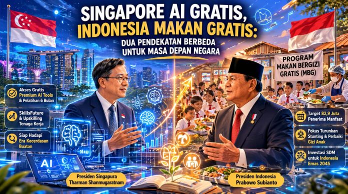 INNNEWS -Di awal 2026, Singapura dan Indonesia mengumumkan program besar dengan prioritas yang sangat berbeda. Singapura melalui Budget 2026 menawarkan akses gratis selama enam bulan ke premium AI tools bagi warga yang mengikuti kursus AI terpilih. Sementara Indonesia melanjutkan Program Makan Bergizi Gratis (MBG) dengan target mencapai 82,9 juta penerima manfaat.