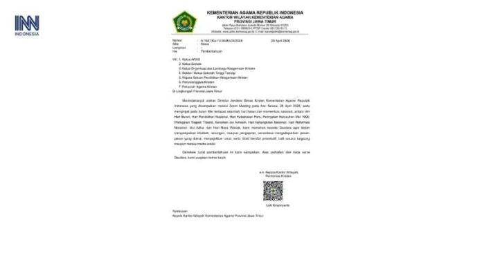 INNEWS – Sebuah surat resmi dari Kantor Wilayah Kementerian Agama Provinsi Jawa Timur memicu perdebatan publik. Alih-alih sekadar imbauan menjaga kedamaian, banyak pihak menilai pesan dalam surat tersebut berpotensi menjadi bentuk pembungkaman suara kritis melalui mimbar agama.